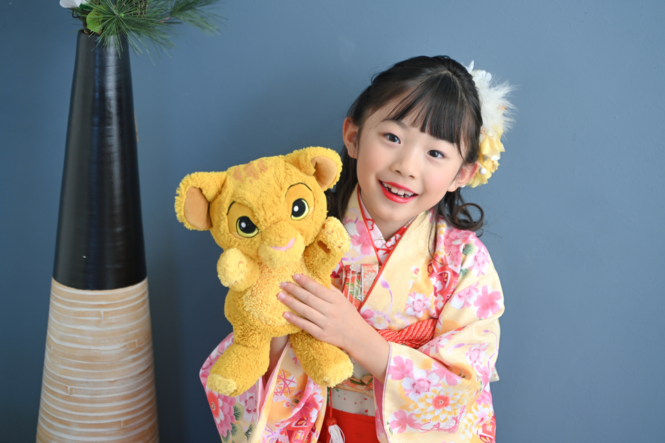 七五三の撮影で今好きな人形やアイテムを使って撮影頂けます