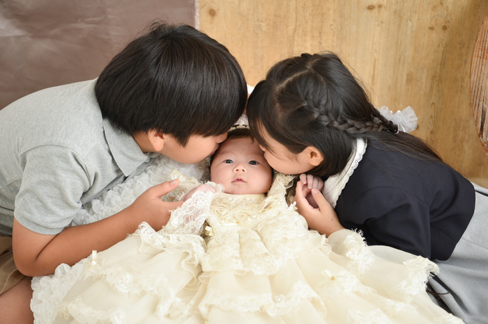 ドレスでもお兄ちゃん、お姉ちゃんと3人で撮影しました!!