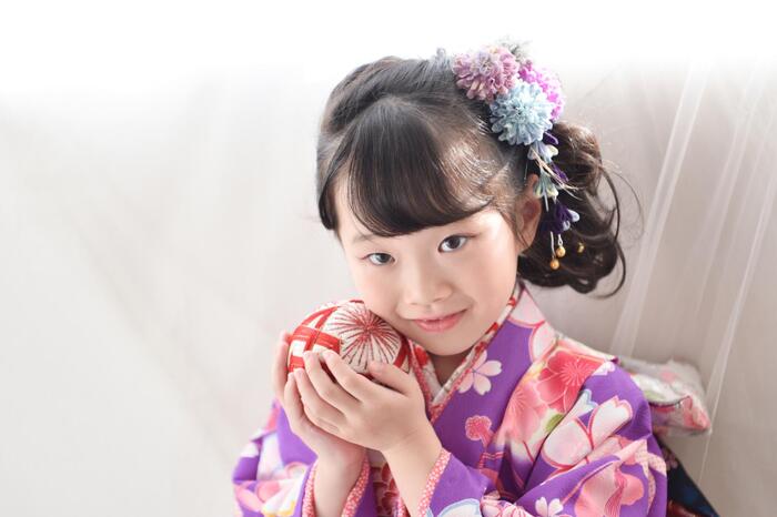 お着物を着ての撮影では和傘や千歳飴などを持ってみました!