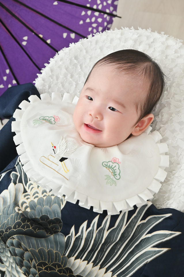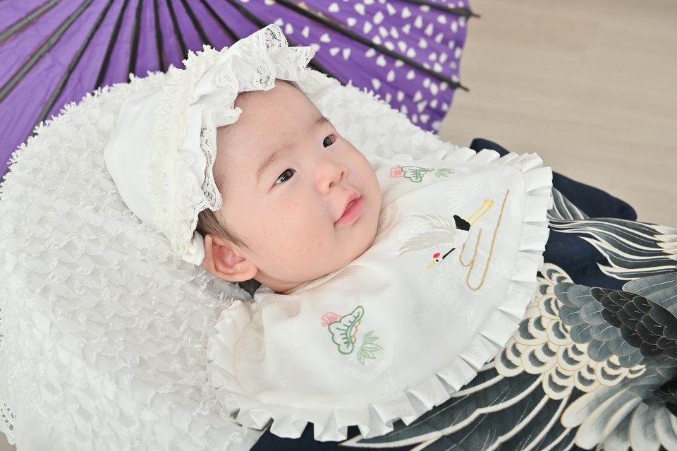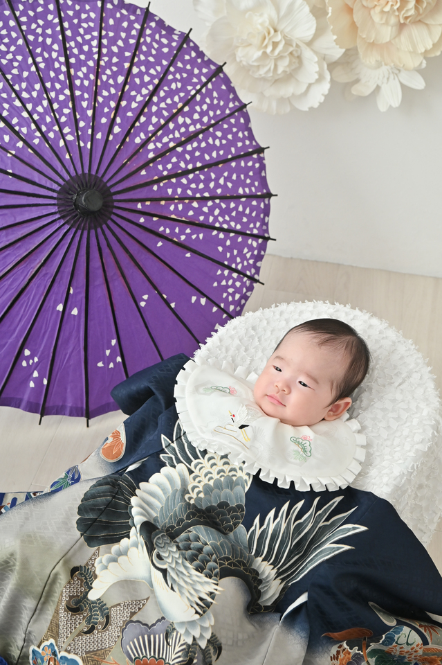 お持ち込みいただいた思い入れのある産着で撮影を行いました