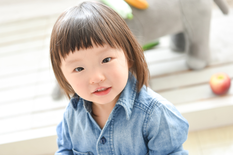 自作の可愛いポーズを披露してくれたり数字の”3”のブロックを頭に乗せたりと遊びながらたのしく撮影ができました
