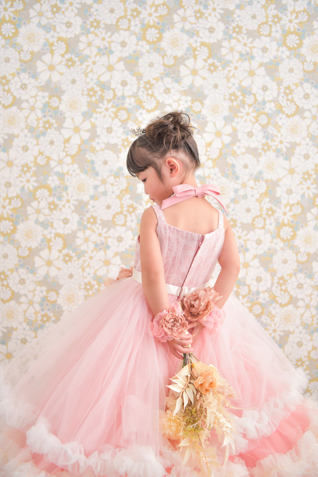 ボリュームたっぷりのピンクのシフォンがとっても似合っていて可愛いです