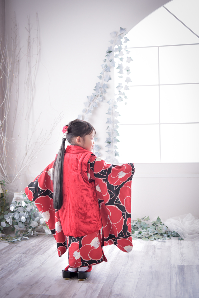 今日はお持ち込みの素敵な着物を着た3歳女の子のご紹介です