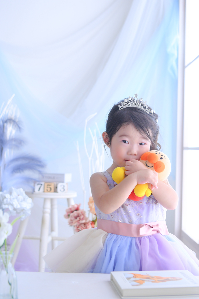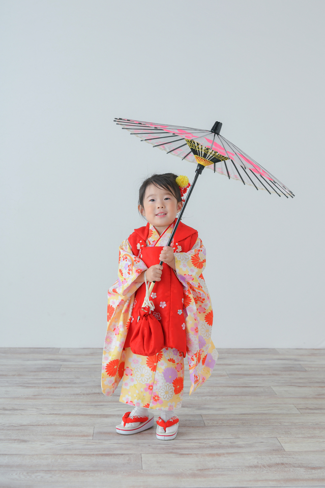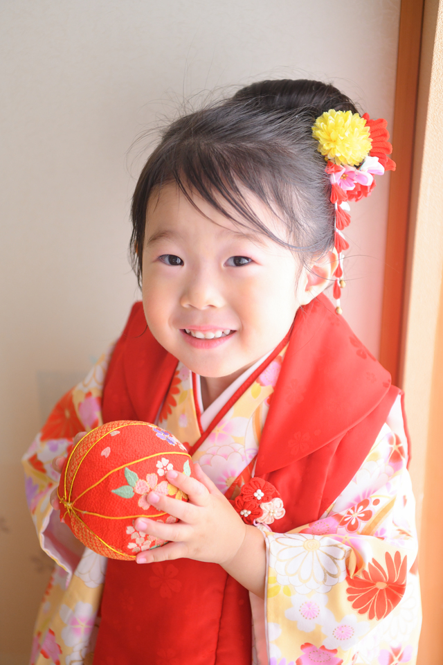 七五三の3歳の思い出として一緒に撮影したいアイテムと一緒に撮影頂けます