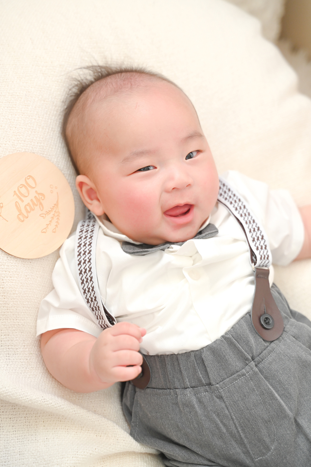 100日祝いショットではお持込みのお衣裳を着ての撮影でした
