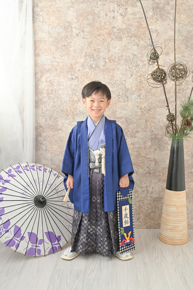 爽やかでかっこいい人気の七五三のお着物です