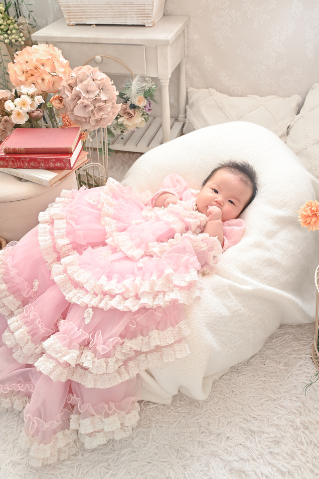 100日祝いショットではお持込みのお衣裳を着ての撮影でした
