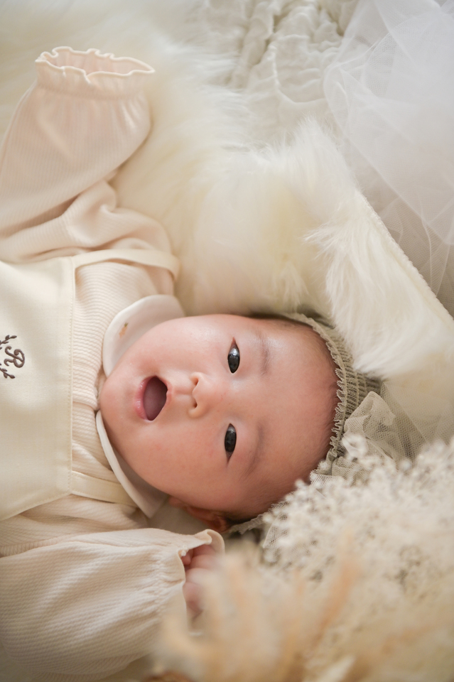 白い産着が似合っていてとっても素敵