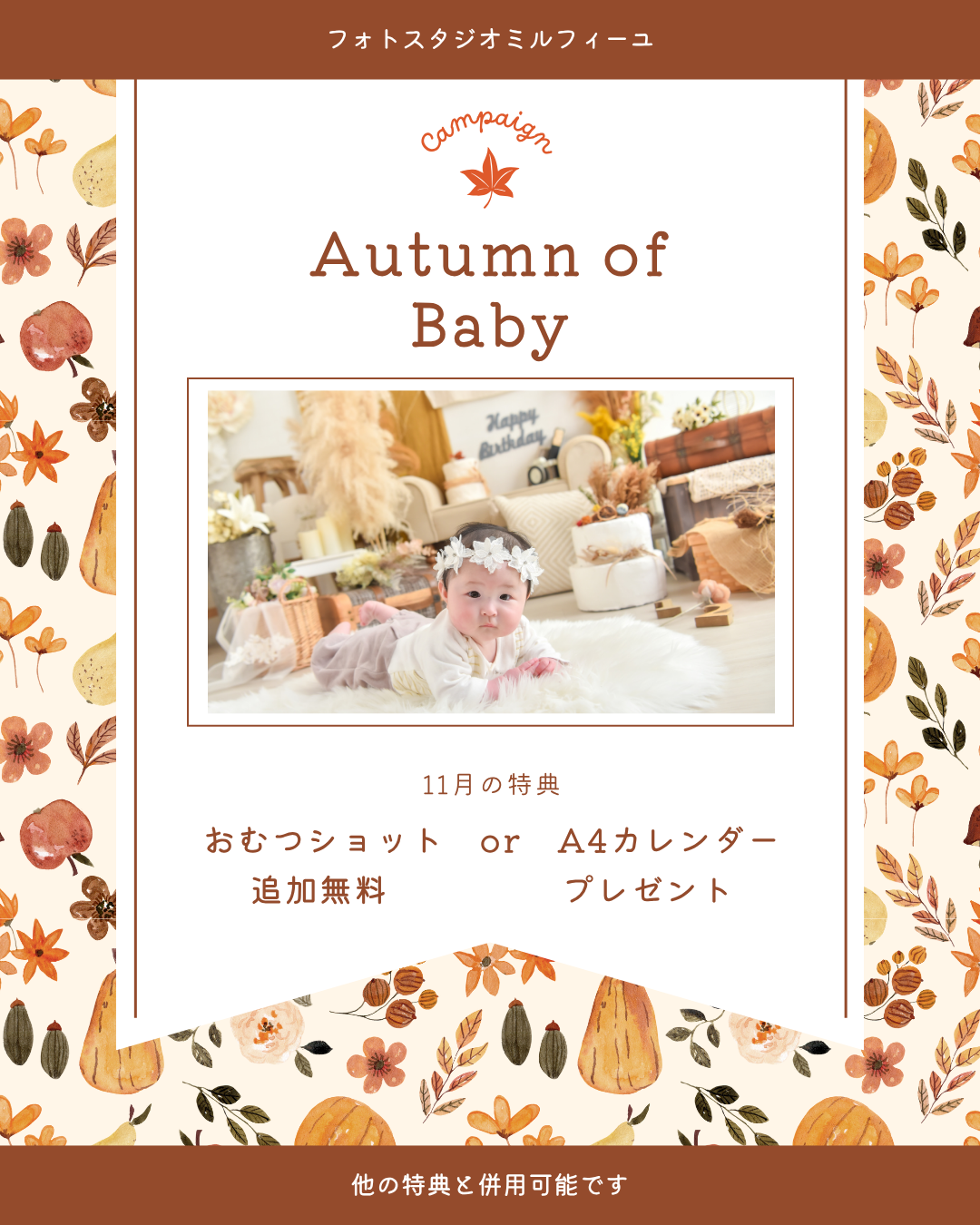 ●お宮参り(1か月)から1歳の誕生日撮影までとなります。(1歳半まで可能)