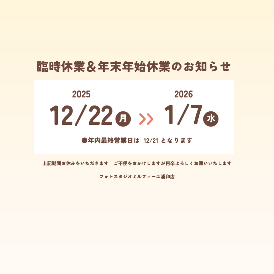 この度フォトスタジオミルフィーユ草加店が2025年1月25日をもちまして移転統合に伴い