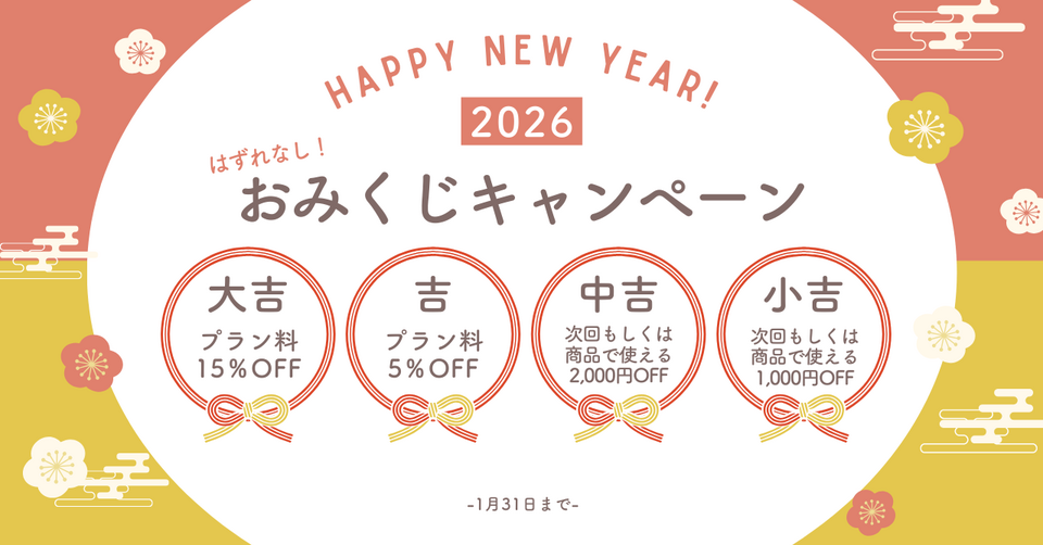 【最大15%OFF】おみくじキャンペーン開催中【1月31日まで】
