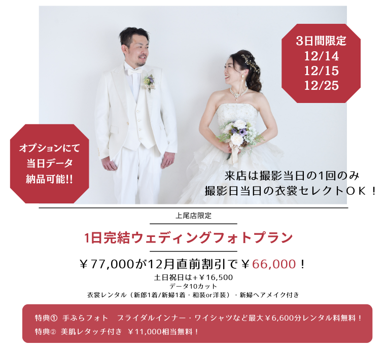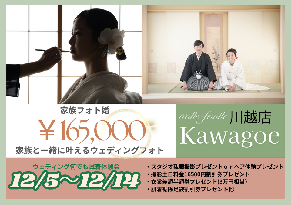 \フォトスタジオミルフィーユ上尾店限定ウエディングフォトプラン登場/