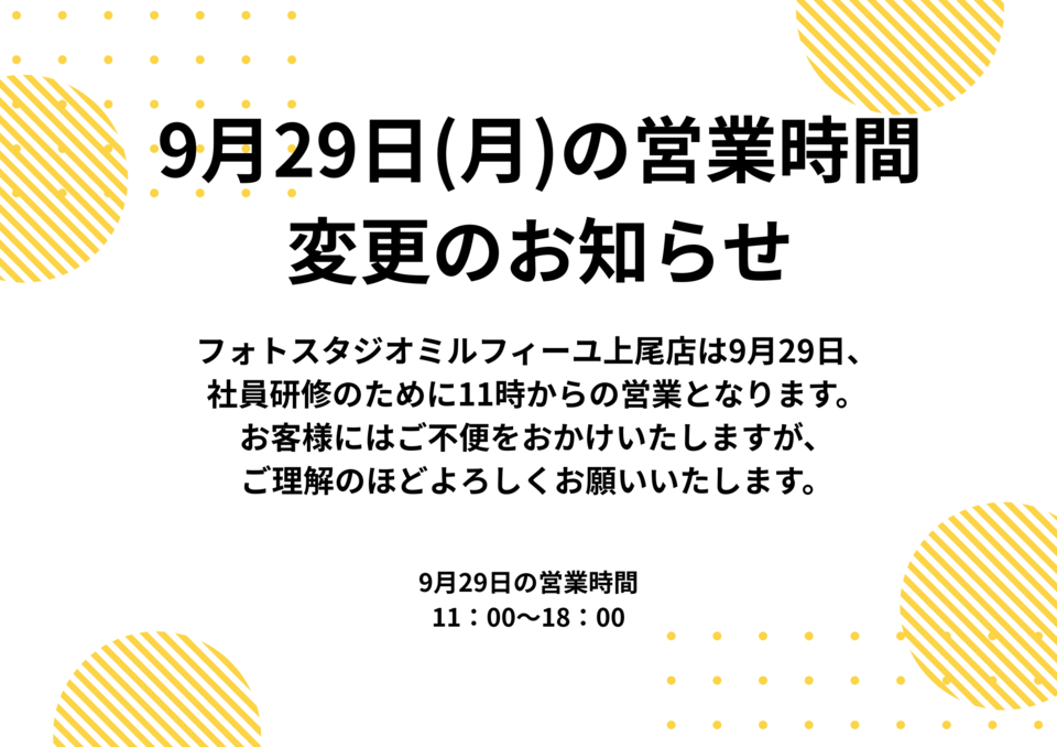 上尾店の9/29営業についてご案内です。